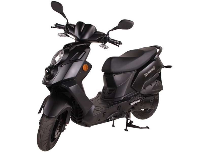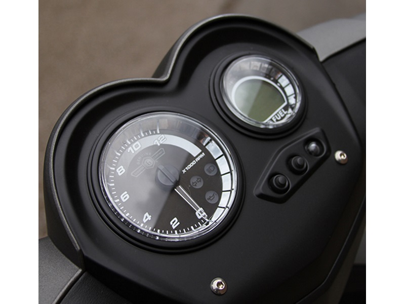 With its long wheel base, dual rear suspension and dual disc brakes, Hooligan is among the most powerful rides in its class. Loaded with extras, the Hooligan is equipped with a projector headlight, alloy rims, a digital speedometer, a large two person seat and plenty of storage capacity. This powerful 170 fuel injected scooter will bring out your inner Hooligan.