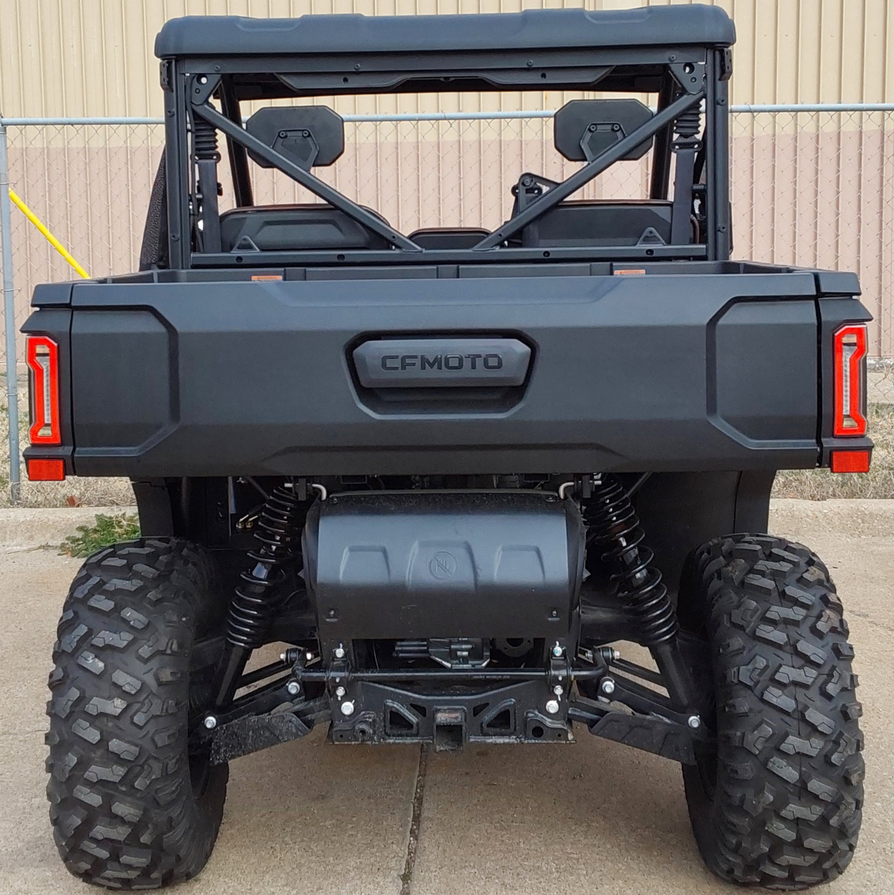 Just got this one out of the crate! We can add on doors and glass if you need it to be enclosed. Check out the push button shifting, 8" touch screen, factory stereo, 4500 lb winch with synthetic rope, electric lift dump bed, 29" tall tires, and more!